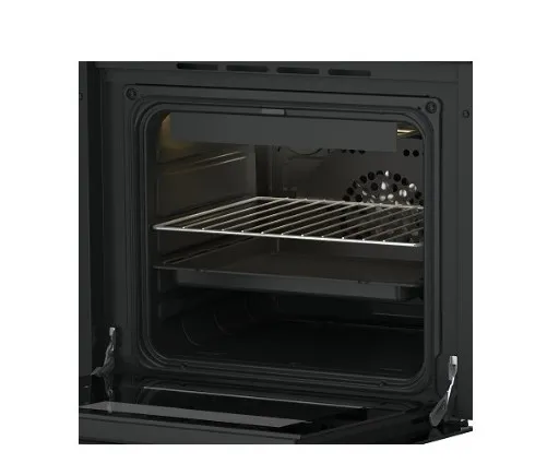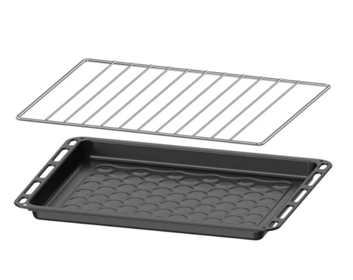 Объем духового шкафа – 50л. Духовой шкаф имеет 9 режимов работы, оборудован терморегулятором, конвектором и электрическим грилем. 4 пары штампованных направляющих позволяют разместить несколько противней одновременно. В комплекте с духовым шкафом прилагается решётка и эмалированный поддон.