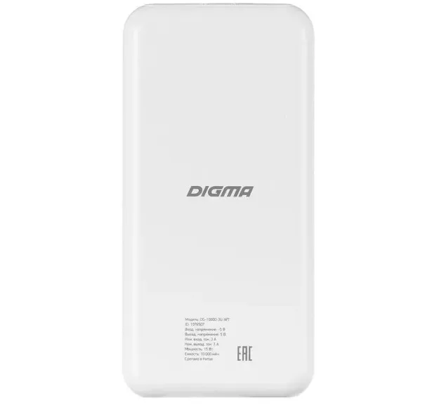 Описание Внешний АКБ Digma DG-10000-3U-WT