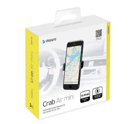 Автомобильный держатель Deppa Crab Air mini разработан специально для автомобилистов, которые активно используют функции своего смартфона в дороге. При этом водителю не придется отвлекаться от вождения. Аксессуар крепится как на вертикальную, так и на горизонтальную решетку автомобиля. Держатель отличается компактными габаритами и лаконичным дизайном. Он оснащен элементом крепления для вентиляционной решетки. Чтобы зафиксировать аксессуар на решетке, достаточно одного нажатия. Немаловажное преимущество держателя - возможность вращения на 360 градусов относительно элемента крепления. Аксессуар подходит для любых гаджетов (iPhone, Samsung Galaxy, Sony Xperia) с разной диагональю экрана - от 3,5 до 5,7", а ширина корпуса держателя составляет 5,6-8 см.