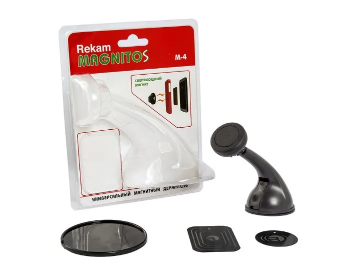 Держатель Rekam Magnitos M-4 предназначен для установки смартфона на приборной панели автомобиля или лобовом стекле. Его шарнирная конструкция позволяет поворачивать устройство, выбирая оптимальный угол обзора экрана. Магнитная платформа с мягким покрытием дает возможность устанавливать и снимать девайс за считанные секунды, не оставляя никаких следов на корпусе. Для использования держателя достаточно наклеить специальную металлическую пластинку на заднюю панель смартфона или чехол. Мощный магнит не влияет на срок службы мобильного девайса и качество изображения на экране.