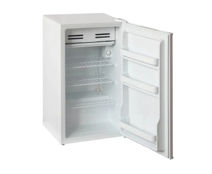 Бирюса 90 укомплектован тремя решетчатыми полками и четырьмя уровнями для их установки, что дает определенную свободу в выборе их положения. На дверце три стационарных балкона. Так как морозильное отделение не изолировано от холодильного, температура на верхних полках будет всегда ниже. Это позволяет подбирать подходящее место для хранения разных продуктов. Перенавешиваемую дверцу можно установить так, чтобы прибором было удобно пользоваться при любом размещении.