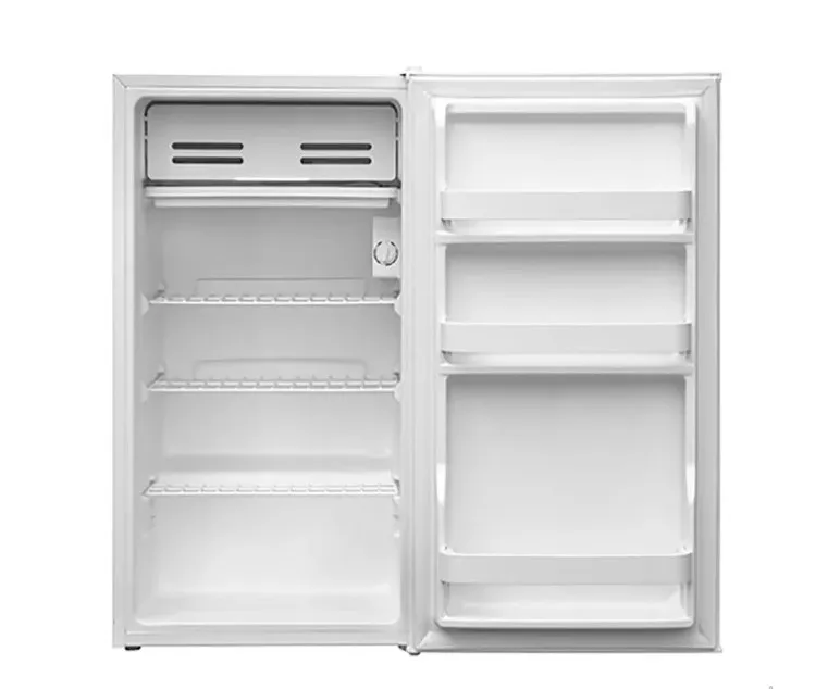 Небольшой холодильник Бирюса 90 (высотой 85 см, с внутренним объемом 93 л) прекрасно подойдет для гостиничного номера, рабочего кабинета или дачи. В нем есть даже морозильное отделение, в котором поддерживается температура -2 °C – для длительного хранения оно не годится, но сохранить пачку пельменей или мороженое до вечера, быстро остудить бутылку с напитком в нем вполне получится.