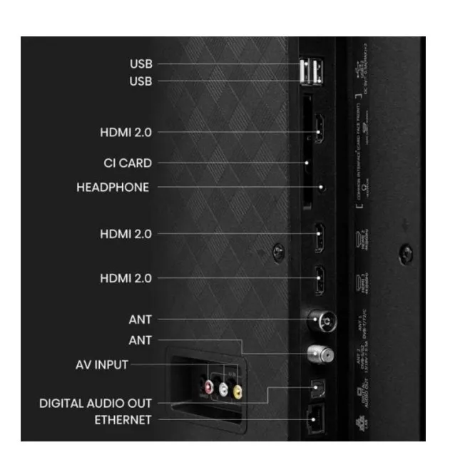 Расширьте свои телевизионные возможности с портами HDMI, разъемами USB, а также Wi-Fi и Bluetooth.