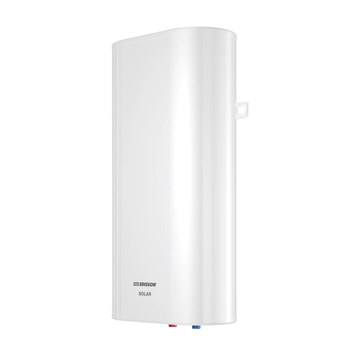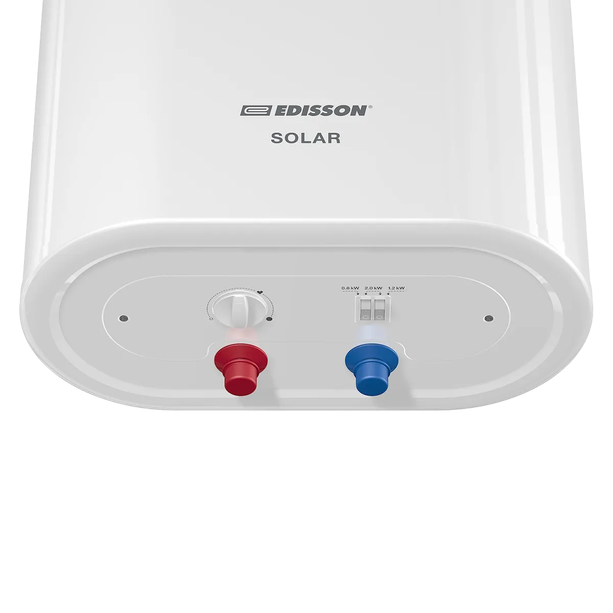 Водонагреватель EDISSON Solar 50 V благодаря узкому цилиндрическому корпусу не займет много пространства в помещении. Внутренний бак объемом 50 л изготовлен из нержавеющей стали. Он устойчив к повреждениям и появлению коррозии. В нижней части предусмотрен поворотный регулятор мощности.
