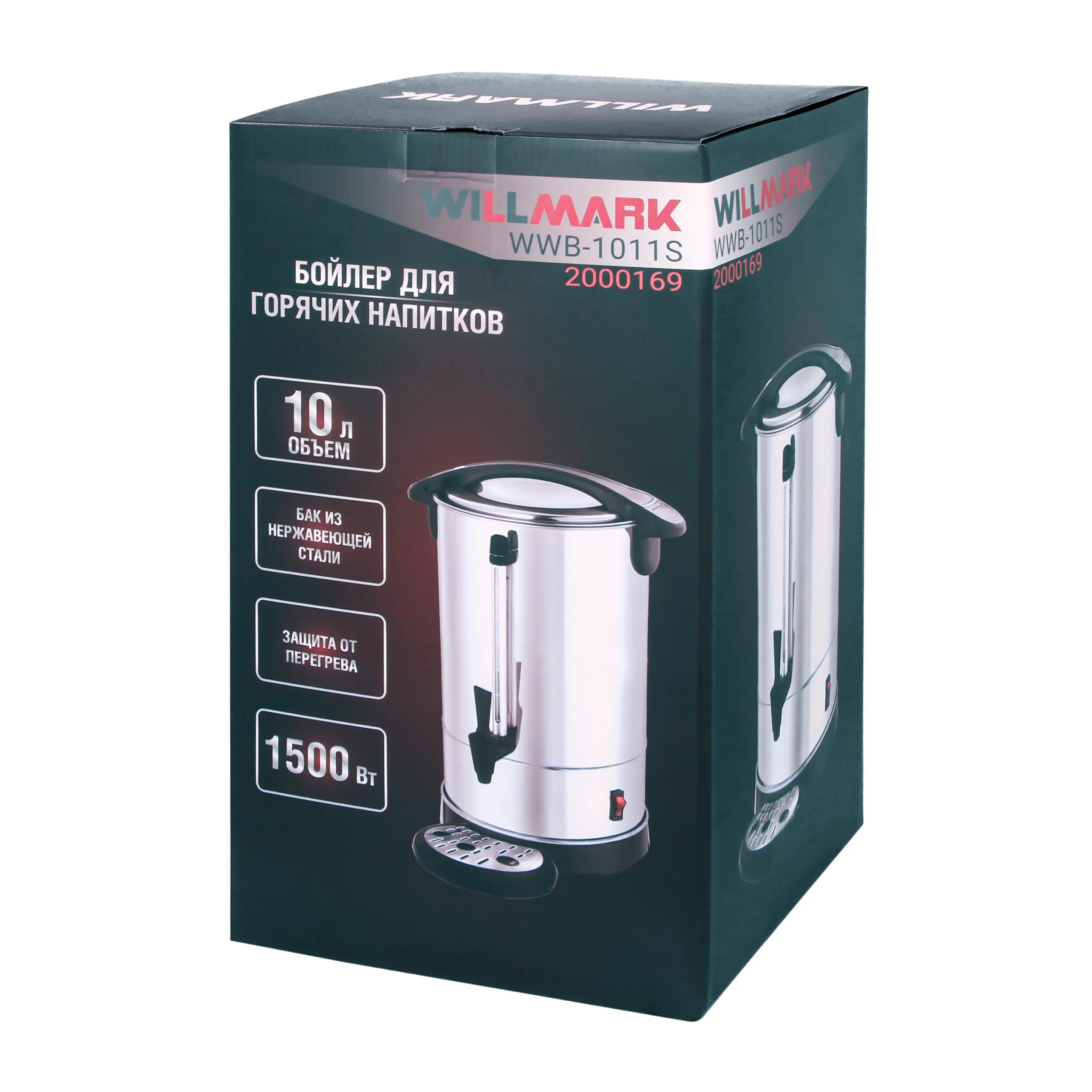 Профессиональный бойлер для горячих напитков WILLMARK WWB-1011S для приготовления горячих напитков в ресторанах, кафе, офисах и на различных мероприятиях. Внутренний бак из нержавеющей стали объемом 10 л. Прибор доводит воду до кипения и поддерживает температуру. В конструкции кипятильников применяется закрытый, не контактирующий с водой ТЭН, оптимизирующий работу прибора и препятствующий возникновению накипи.