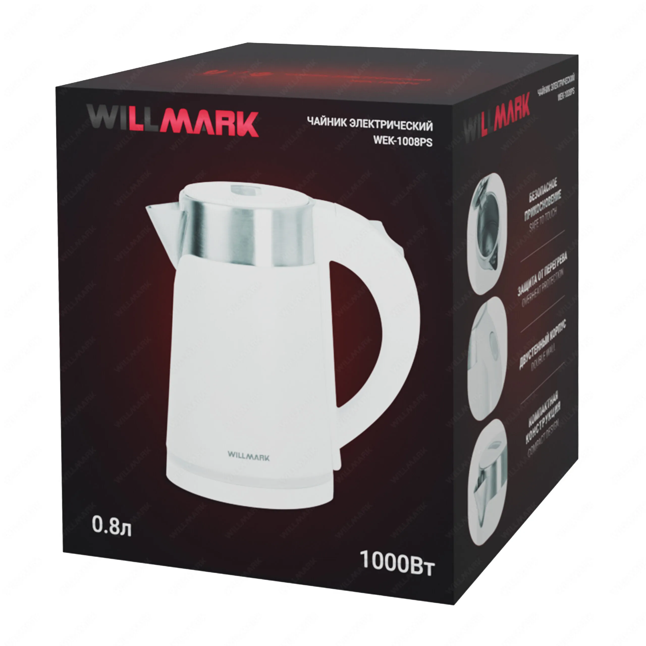 Чайник WILLMARK WEK-1008PS представлен в небольшом объеме 0,8 л., мощностью 1000Вт с закрытым нагревательным элементом из нержавеющей стали. Удобен в эксплуатации. Данная модель имеет двустенный корпус , в котором наружная часть выполнена из экологически безопасного пищевого пластика, а внутренняя – из нержавеющей стали. Благодаря такой технологии наружная поверхность чайника не нагревается, о него невозможно обжечься, а при нагреве воды существенно снижается уровень шума. Эффект термоса с вакуумной прослойкой между стенками позволит воде дольше оставаться горячей и снизит затраты на электроэнергию. Компактная конструкция данной модели может быть отличным решением для обеспечения гостиниц, санаториев, баз отдыха, а также для личного пользования в любых вариациях.