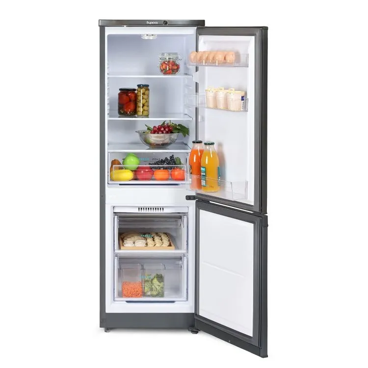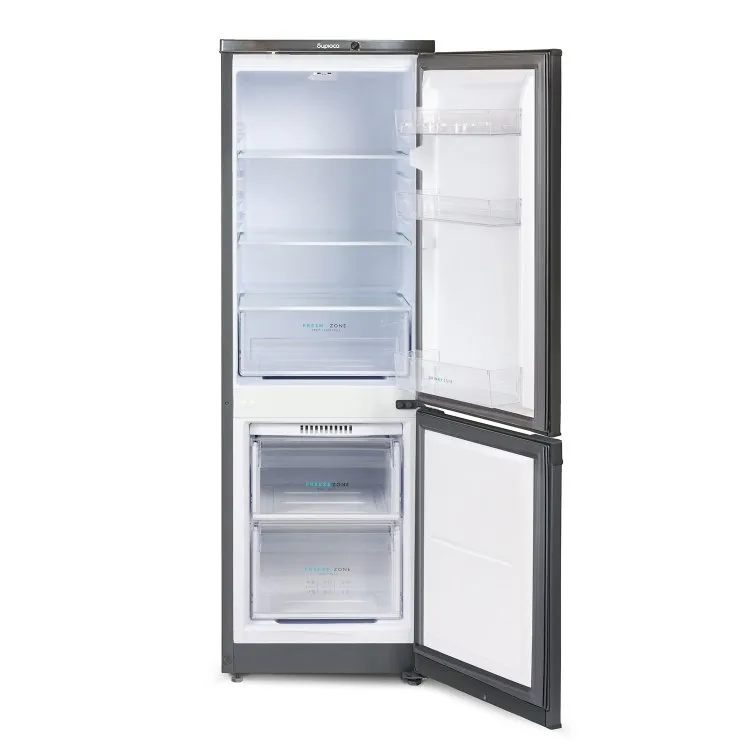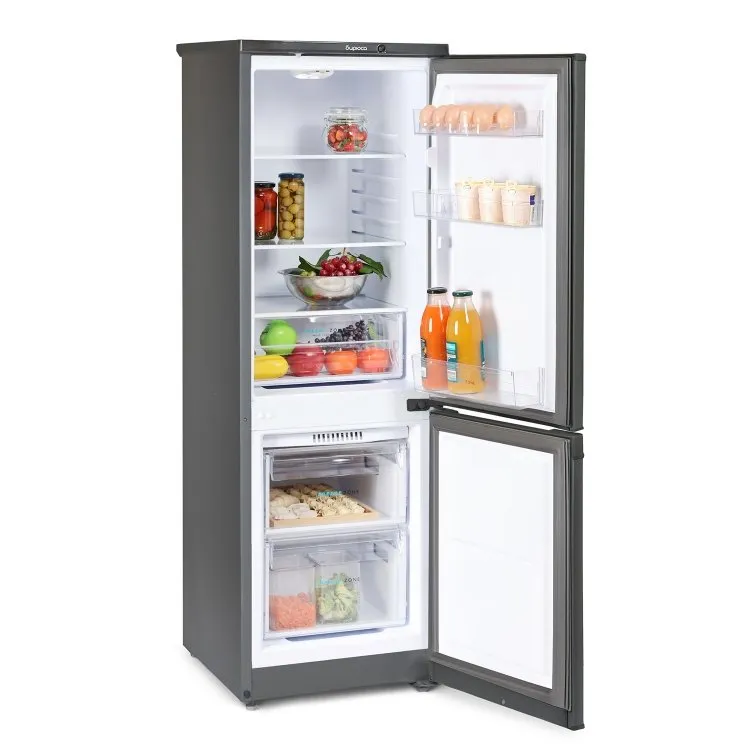Холодильник Бирюса W418 — компактная двухкамерная модель в матовом корпусе графитового оттенка. Просторное холодильное отделение объемом 125 л дополнено морозильной камерой на 55 л, что оптимально для небольших кухонь.