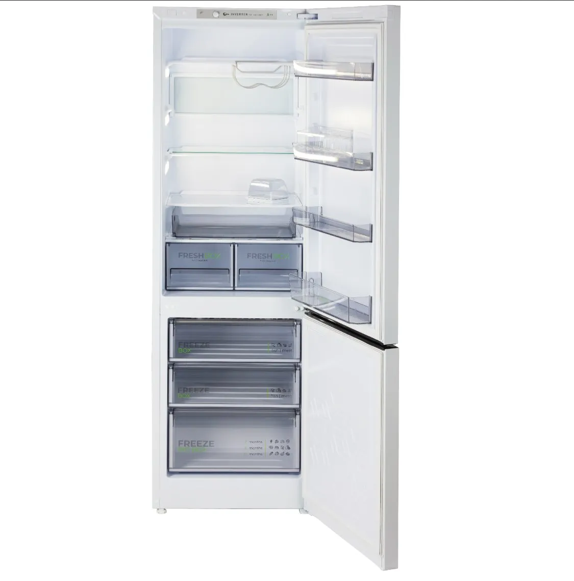 Габариты ВхШхГ, см: 190х60х62,5; Цвет: Белый; Количество камер: 2; Расположение морозильной камеры: Нижнее; Тип компрессора: Инверторный; Класс энергоэффективности: A++; Автономное сохранение холода: 17 ч; Минимальная температура в морозильной камере -18 °C; Управление: Механическое; Количество ящиков в морозильном отделении: 3; Общий объем: 345 л; Общий полезный объем: 295 л; Полезный объем холодильной камеры: 225 л; Оттаивание холодильной камеры: капельное; Объем морозильной камеры: 100 л; Материал полок: стекло/пластик; Количество ящиков в холодильном отделении: 2; Суточный расход электроэнергии, при температуре окружающего воздуха 24°C: 58 кВтч; Количество полок в холодильном отделении: 5; Температура в отделении для хранения свежих пищевых продуктов: От 0 до 8 °C; Мощность замораживания: 5 кг/сутки; Размораживание морозильной камеры: ручное; Климатический класс: N, ST; Максимальный уровень шума: 39 дБ; Количество компрессоров: 1; Освещение: LED; Объем холодильной камеры: 245 л