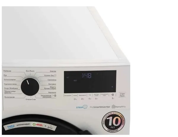 Вы можете включать стиральную машину на ночь и не беспокоиться, что ее будет слышно. Для снижения уровня шума, а также экономного энергопотребления в машинке установлен инверторный мотор ProSmart. При регистрации покупки на официальном сайте Beko на мотор будет действовать гарантия 10 лет.